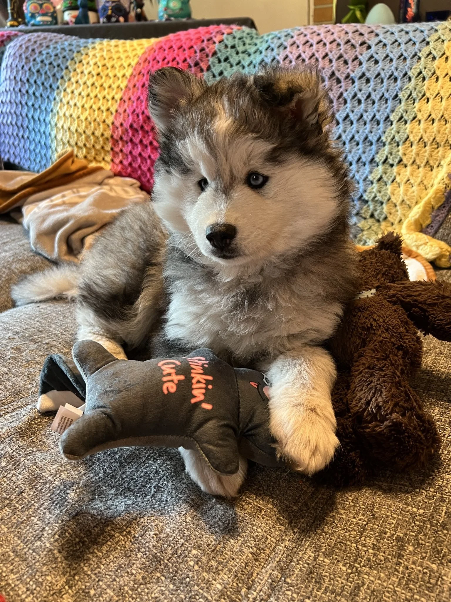 “Buying a puppy online can be a harrowing experience, especially when there are so many scams online. Ariel with Pathfinder Pomskies made the process painless and anxiety free. She answered all my questions, even when I texted her multiple times a day, and happily sent me photos and updates on how the puppies were doing, going so far as to offer to video chat so I could see the puppies live. When it was time to pick up my chosen puppy, she made it super convenient, and even set up a group chat with a flight nanny for me. I received full papers and a record of the puppies vaccinations, along with a care package of puppy snacks and toys. This is one of the best breeders I've worked with. I will happily return to her if I ever want another Pomsky puppy! Highly recommended!”